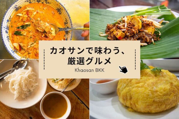 カオサン通りのおすすめグルメを厳選紹介。ミシュラン掲載のタイ料理食堂からローカル屋台、日本食レストランまで実際に食べて良かった店をまとめています。